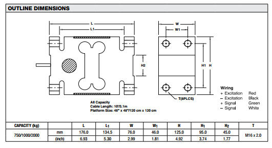量程:750,1000,2000Kg